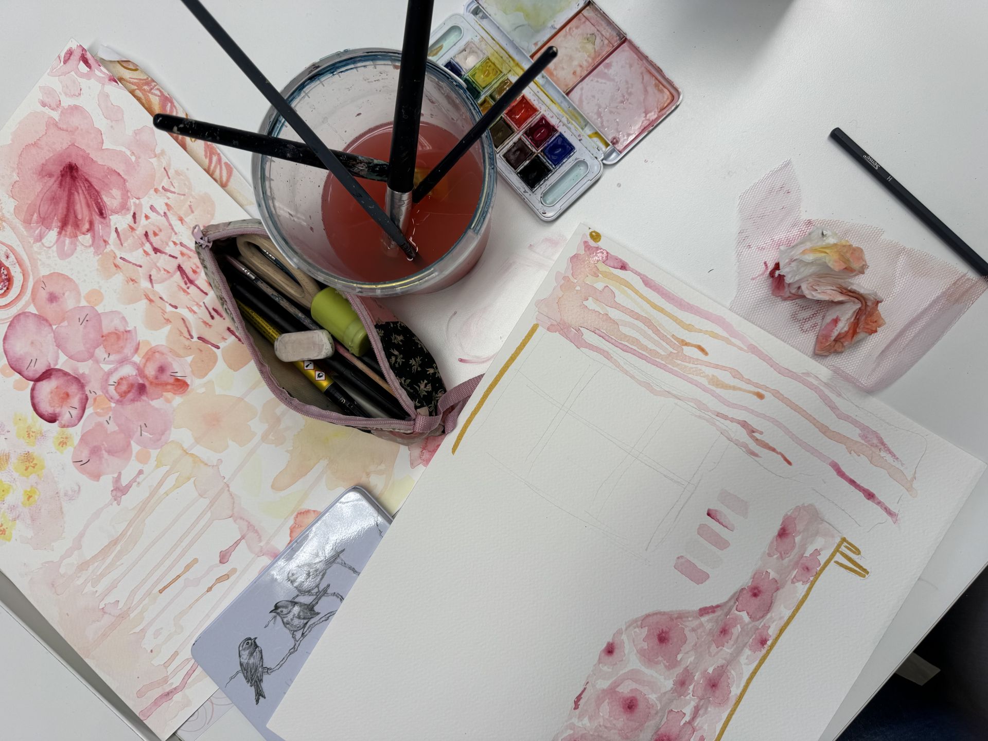 Nyt talvi ja kevään vaihde on mennyt melko stressaavissa fiiliksissä. Olin lomalla perheen luona viettämässä talvilomia ja samalla pidin taukoa taide prosesseista ja tehosta, kun tarvikkeita oli melko rajallinen määrä mukana. Arkeen palattua on ollut stressaava ja jälkeen jäänyt olo. Syy on se, että ennakkotehtävät ovat tulleet julki ja niiden ideointi on pitkällä. Pitäisi varmaan sanoa, että tehtävät ovat tehtynä, mutta ei ole.