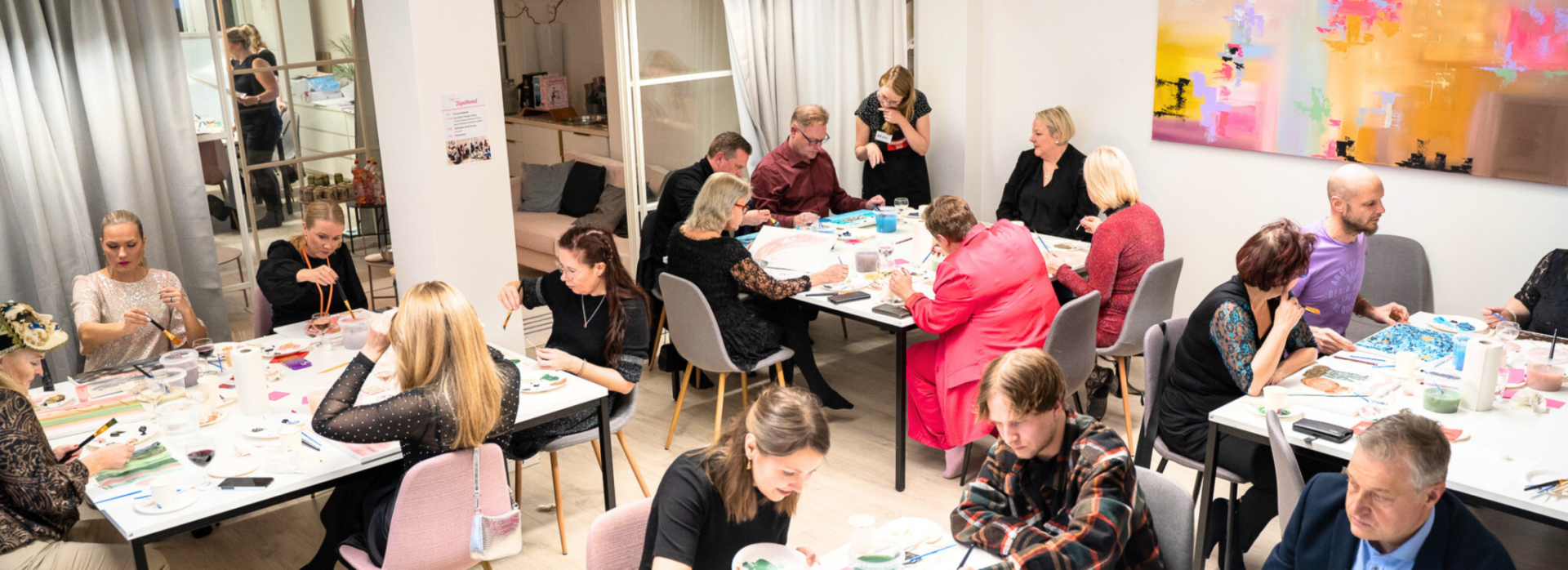 - Yritysten maalaustyöpajaksi, tiimipäivän tai pikkujoulujen ohjelmaksi