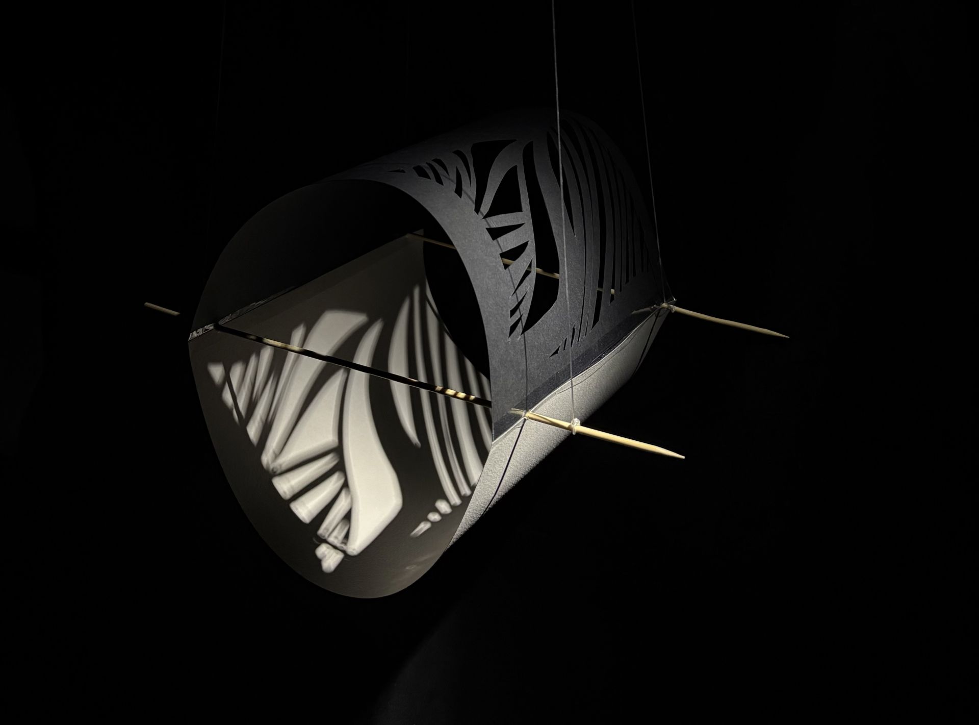 Lopulta oivalsin, että puutikkujen luoma jännite ja aukkojen rytmi olivat työn sydän. Kun valokuvausvaiheessa valo lankesi mustan pinnan läpi harmaalle alustalle, tila heräsi eloon. Josta syntyi valon ja rakenteen liitto.