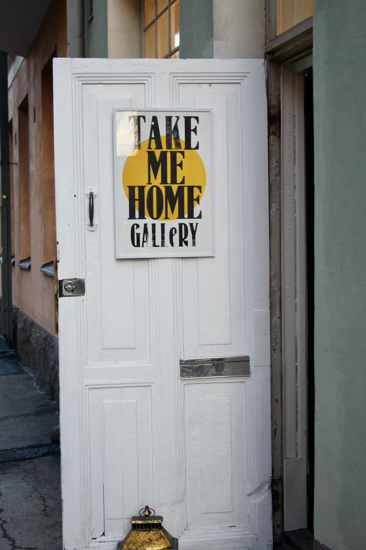Nelosen ratikka kirskuu tiukoissa mutkissa kohti Katajanokkaa. Ohitan Tove Janssonin puiston ja astun ulos remontoidun Jungmannin pysäkillä. Kävellessäni Kauppiaankatua ylös vankilaa kohti, huomaan jugend-talon katutasossa valoa tulvivat ikkunat. Katseeni tarkentuu ikkunan taideteokseen. Ovi on kutsuvasti auki ja siinä teksti TakeMeHome-Gallery.